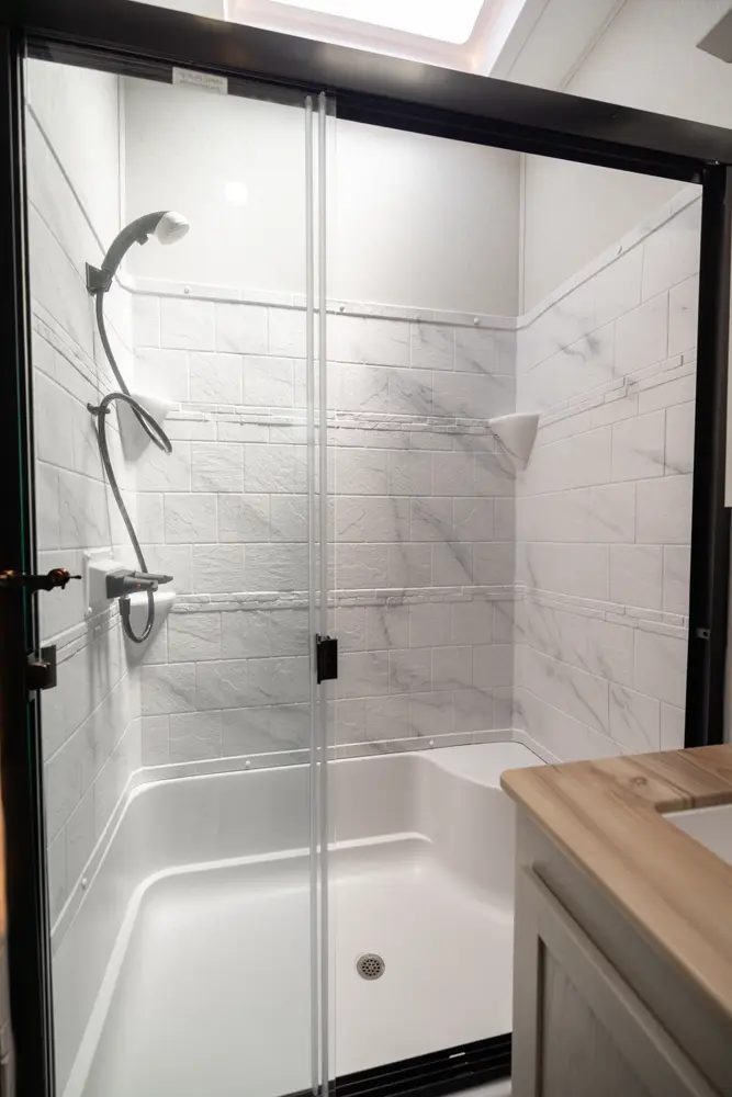 • Full Size Shower W/ Sliding Glass Doors & Seat
